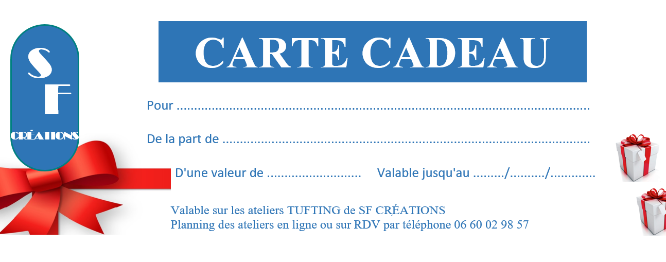 Idéal pour un cadeau de dernière minute. Noël et vœux, anniversaire, Saint Valentin, Fête des Mères, Fête des Pères, Mariage, EVJF, EVG… Offrez une carte cadeau pour participer à un ou plusieurs atelier(s) et/ou offrir un tapis unique de ma collection.